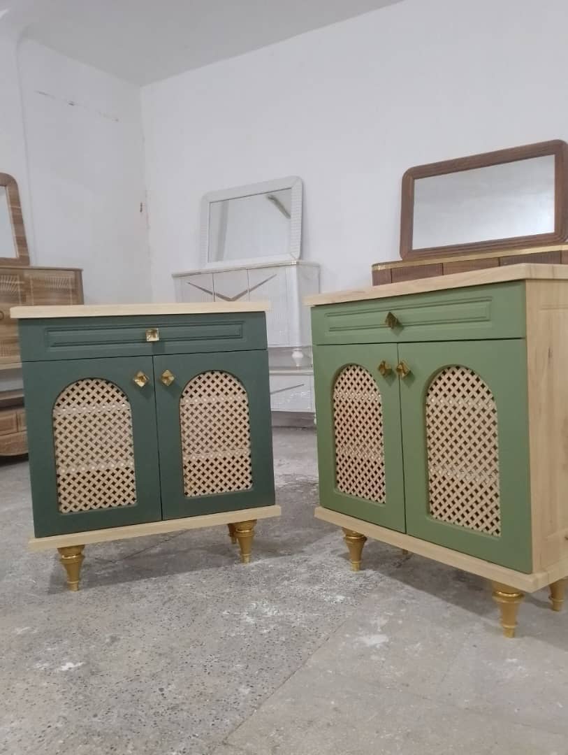 ست میز تی وی + آیینه کنسول مدل حصیری گنبدی