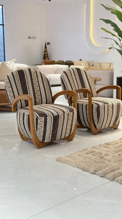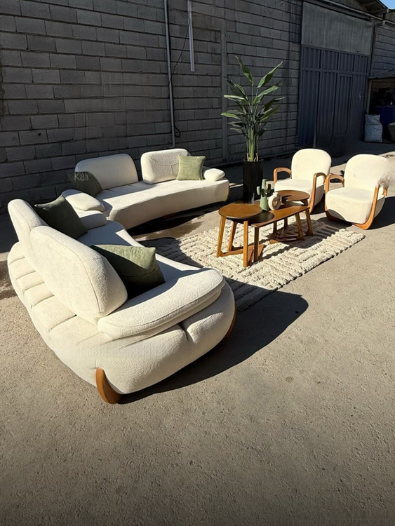 2عدد 3 نفره ( یکی از 3 نفره ها دوتیکه و یکی از 3 نفره ها یک تیکه + 2عدد تک نفره چوبی بسیار راحت و مدرن