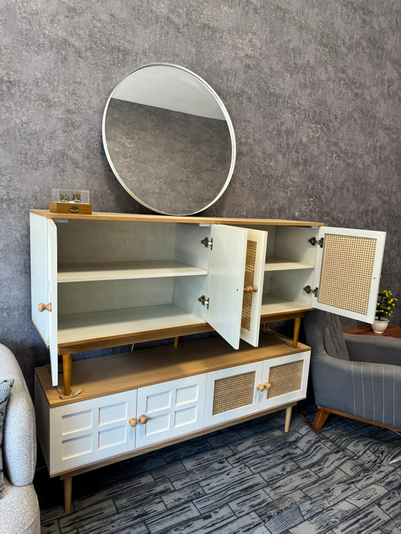 کنسول دارای 4 درب مگنتی و آرام بند میباشدو میز تلوزیون دارای 2 کشو مگنتی است.