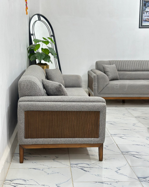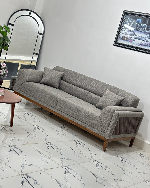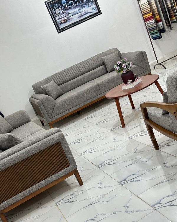 مبل جذاب مینمیال کد 10 : 7نفره شامل : 1 کاناپه 3 نفره / 1 کاناپه 2 نفره / 2 عدد تک نفره چوبی